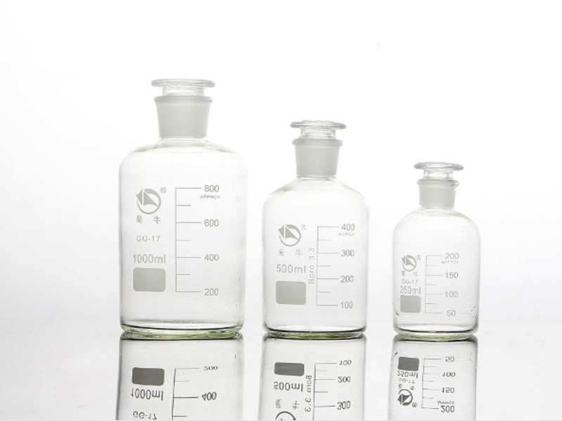用于盛放化學試劑的瓶子,按材質分為玻璃和塑料,按大小可分為廣口瓶和細口瓶,按盛放物質可以分為固體和液體試劑瓶,廣口瓶盛放固體,細口瓶盛放液體。瓶口內部為磨砂設計,保持密封,防止試劑外漏。