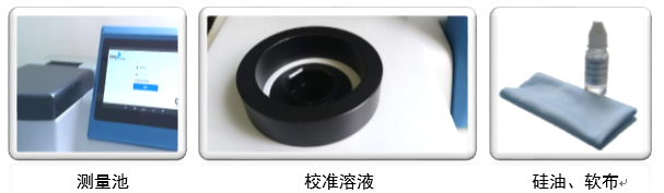 電源線、校準溶液(0.02 NTU,20.0NTU,100NTU,800NTU)、樣品瓶(3個、18ml)硅油(10ml)、軟布、使用說明書、保險管 |