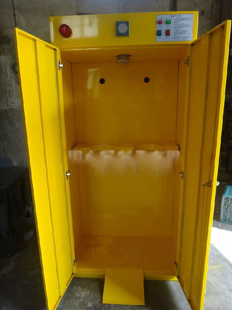 全自動報警氣瓶柜該報警系統技術性強,靈敏度高,一旦有氣體泄露,該報警系統自動報警并自動排風,把危險氣體排出室外。柜體內部結構可保證氣瓶的安置和擺放。適合各種氣體氣瓶的存放。牢固可靠,防腐阻燃。